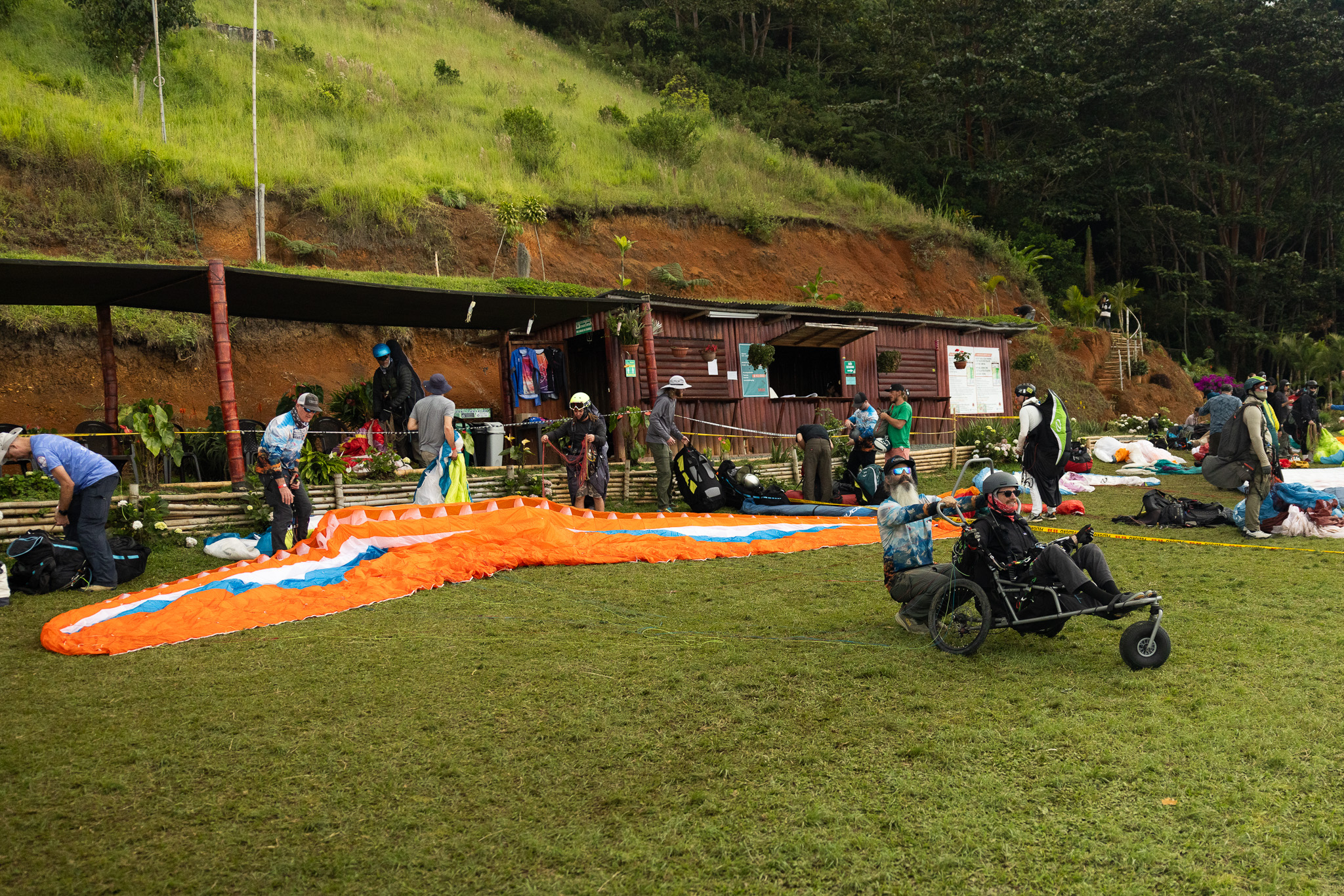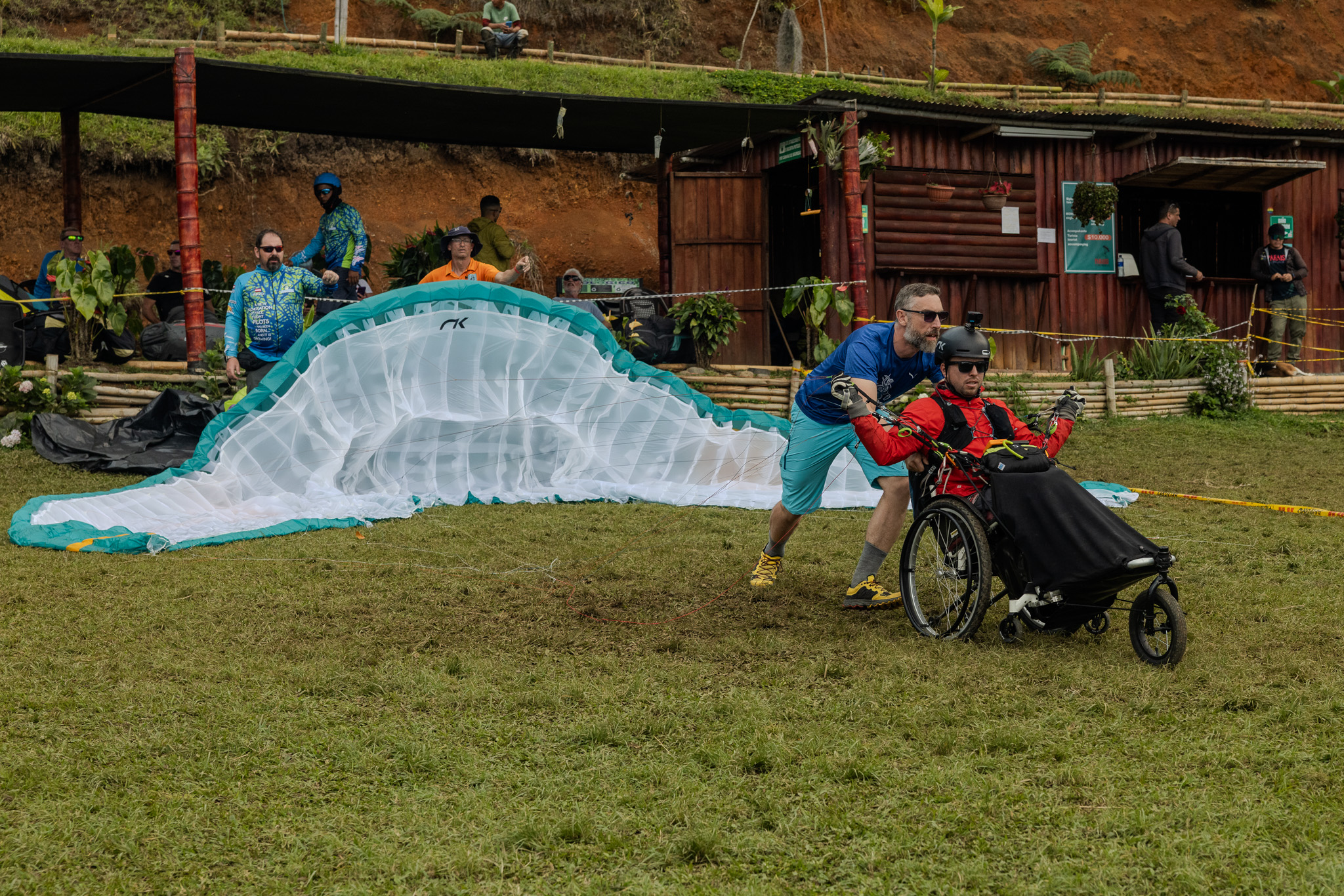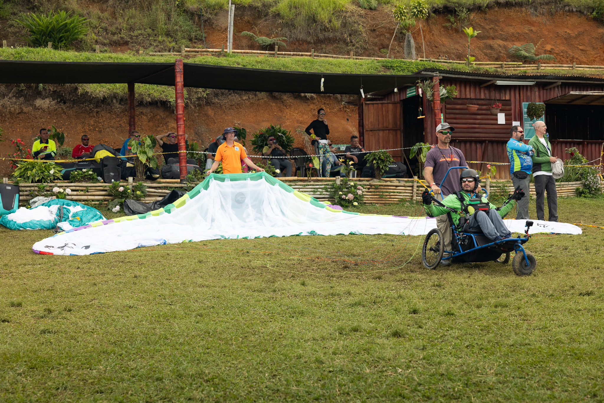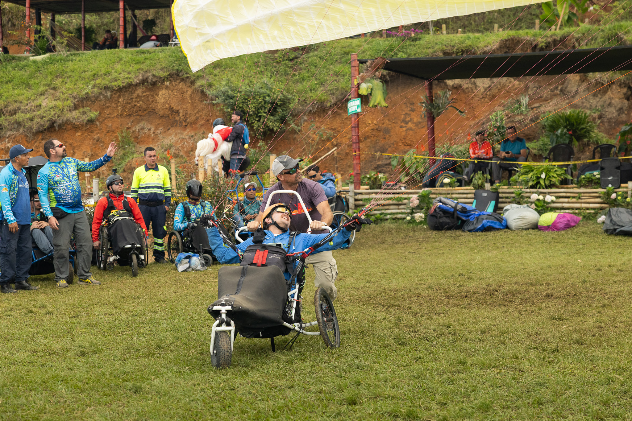 Wheels4flying is an international, non-profit organization that operates in many countries around the world to enable sports paragliding to all people with reduced mobility. The 2025 event, held in Colombia, is the First Wheelchair-Assisted Paragliding International Cup.